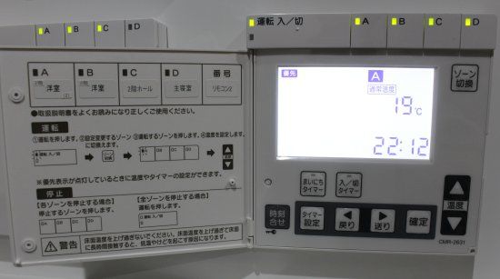25度を基本とし、家族4人で寝る子ども部屋だけは19度に設定してます。