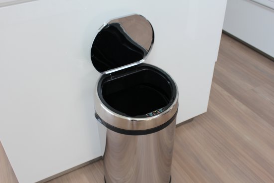 手をかざして開け、ポンとゴミを捨てるだけであとは勝手に蓋が閉まるので、ゴミ箱を触らなくて済み、衛生的だと思います。