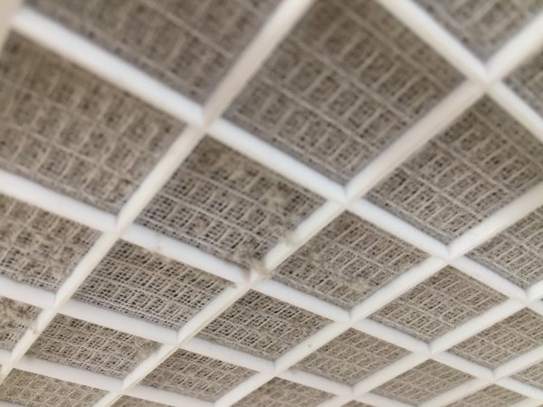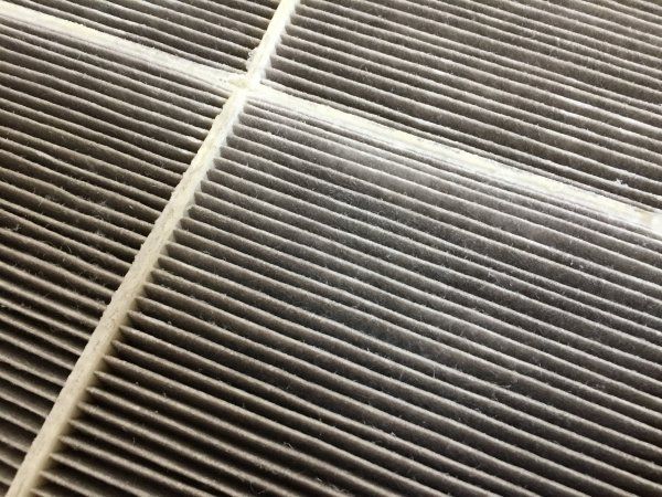 上の汚れているのがフィルターで、3ヶ月に1回、フィルターに着いた汚れを掃除機で吸い取ります。