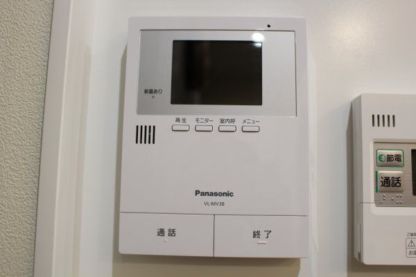 家の中のモニターではカメラで来客の顔が見え、通話ボタンで応対することができます。