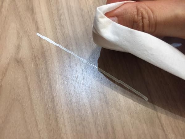 乾いて透明になる?とか思いながら、説明書のとおりティッシュで軽く吹きました。