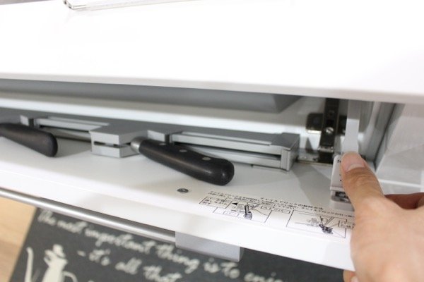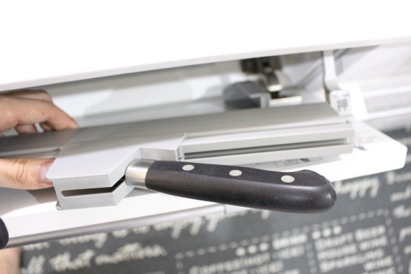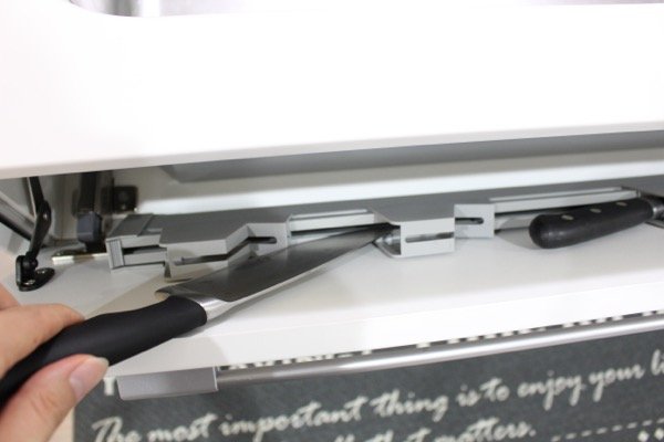 これ、初期の状態だと包丁を右から左に差し込んで収納するようになっていました。