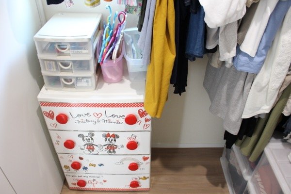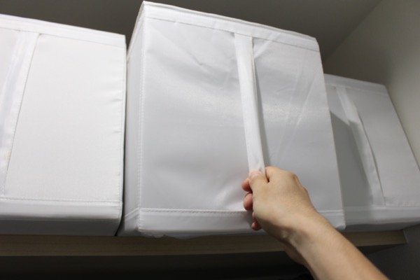 棚の上に置いたボックスも取り出しやすくて良いものを買ったなと思います。