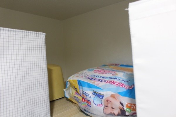 今のところ、オムツなどを置いていますが、もう一つボックスを買って、滅多に使わないようなものを置いても良いかも。