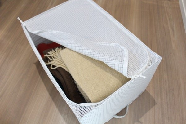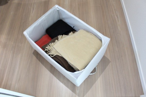 ニトリのクローゼットケースの上には、こんなボックス収納にポケットティッシュやハンカチなどを入れて置いています。